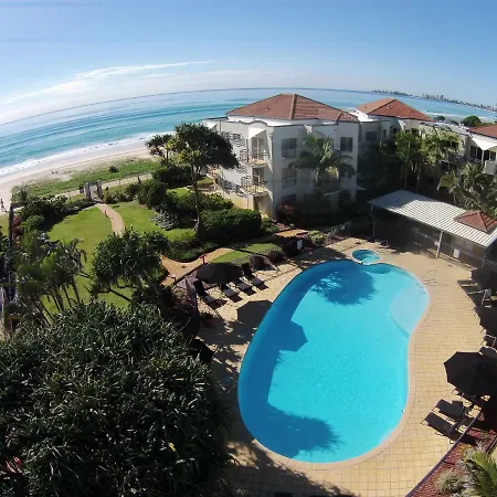洋の風景を見渡すホテルゴールデン リヴィエラ ビーチ リゾートはゴールドコーストのカルンビン・ワイルドライフ自然保護区から徒歩15分です。 Flannerys Tugunの近くに位置し、温水プールがあり、ライブラリとゴルフコースを提供しています。